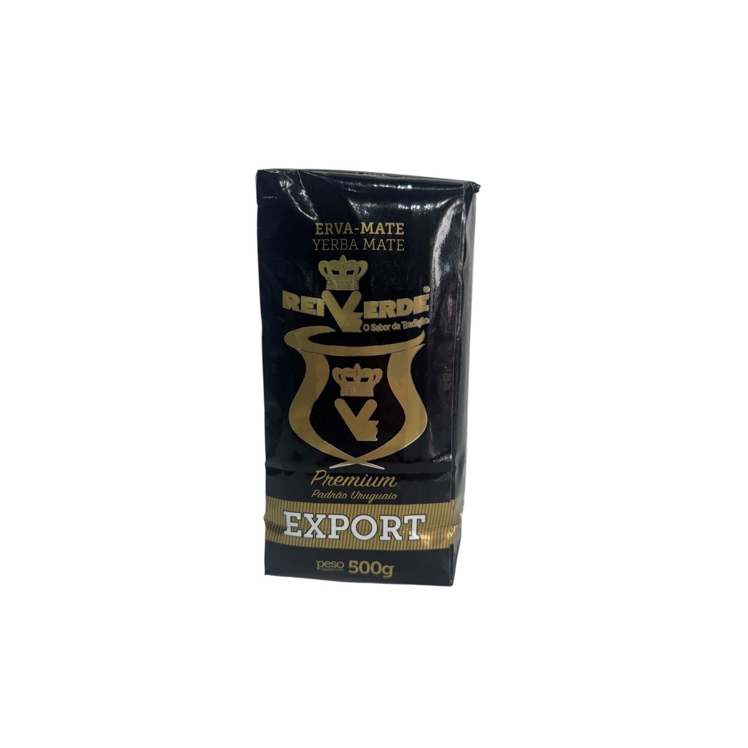 Erva Mate Rei Verde Export padrão uruguaio. Proveniente das melhores regiões de cultivo do Brasil, elaborada quase 100% folhas e um estacionamento (envelhecimento) ideal, resultou em um produto de alta qualidade com cor dourada e sabor peculiar mais amargo e intenso.
