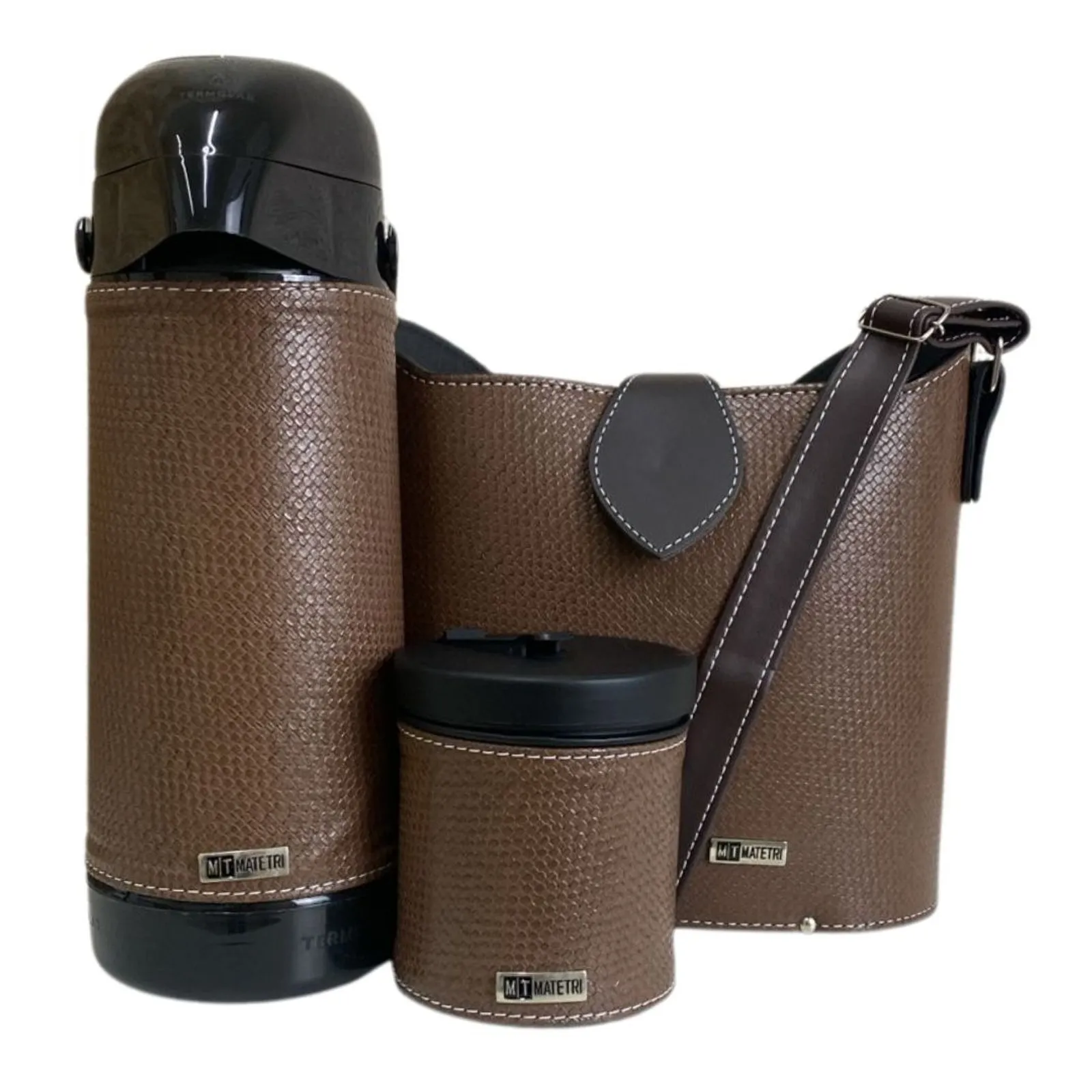 Kit contém: Bolsa, Garrafa térmica de 1 litro e Porta-ervas. Produzido em material sintético de alta qualidade e durabilidade.